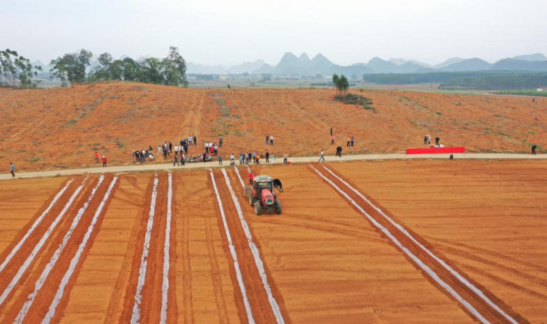 近日,在来宾市武宣县思灵镇高岭甘蔗种植农民专业合作社的种植基地,机器轰鸣,数台“铁牛”正在抢抓晴好天气,紧张有序地忙碌着,对土地进行挖沟、耙地等作业,泥土翻涌成金黄的波浪。搭载北斗导航的无人种植机,将一段段甘蔗种规范的放在预定位置,同时按要求盖上保护膜,从空中往下看,仿佛为大地绘出一条条清晰的“脉络”。